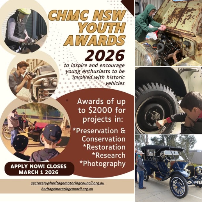 For more information - Youth Awards or your local CHMC NSW Affiliated Historic Vehicle Club