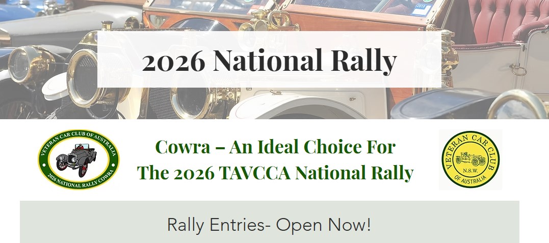 Gathering our veteran cars and their owners at the National Rally is a tradition that both celebrates motoring heritage and demonstrates that vehicles that are more than a century old are reliable, drivable and very enjoyable. The Veteran Car Club of Australia (NSW) invites you to join us at the 2026 National Rally in the Central West of NSW to enjoy a week of motoring and camaraderie with your veteran car or motor cycle. Over six days we’re offering you the opportunity to explore the Cowra region’s best scenic attractions, savour its delicious food and drive your veteran car to your heart's content. Rally Entry Form 2026 National Veteran Vehicle Rally Facebook